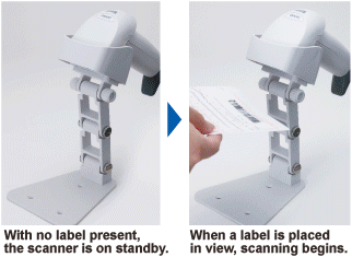 DENSO AT-20 series 二维条码扫描器透过支撑架进行自动扫描,加速工作效率。
