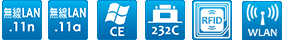 | 通信协定 | IEEE802.11b/g/n,Bluetooth 2.0+EDR級等2,RS-232,USB |