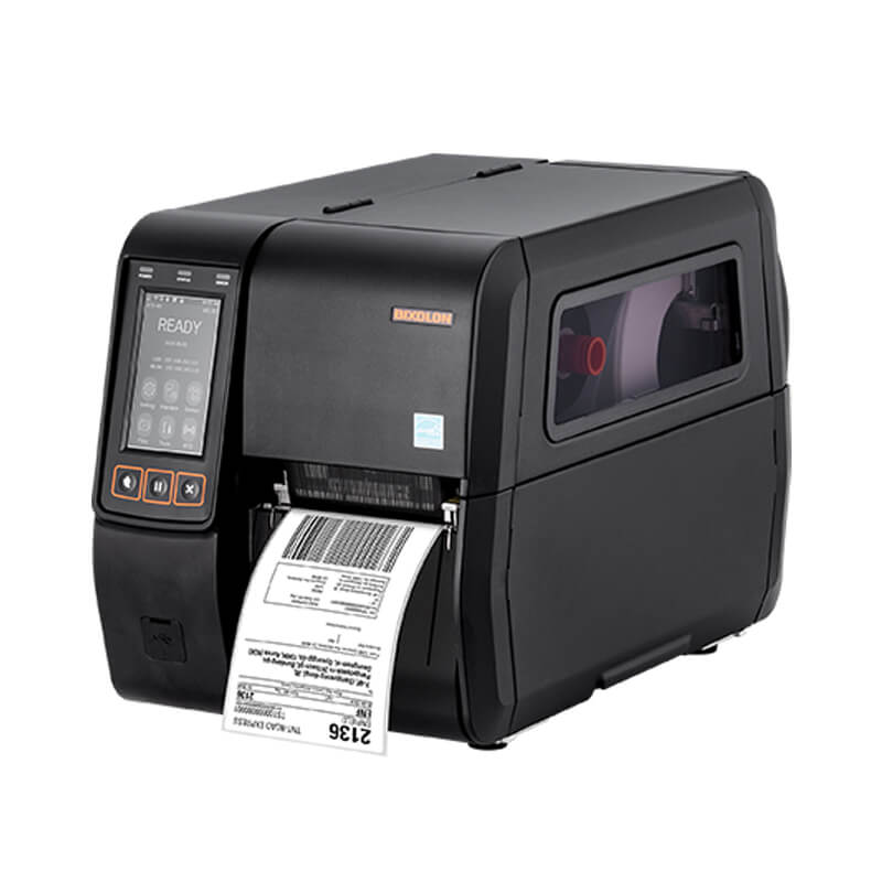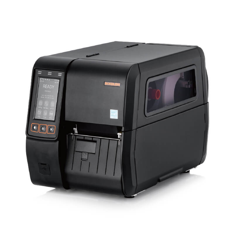 ✔友善的操作界面 Bixolon XT5-40条形码打印机搭载4.3英寸全彩色触摸LCD液晶屏幕,色彩清晰明亮,信息一目了然,藉此提高工作产能。 ✔坚固耐用,人性化设计 ◆ XT5-40工规条形码标签机 ,使用铝制机身和防黏金属外壳,坚固耐用,适合各种严酷的环境,除此之外无需工具即可维护滚筒和打印头。 ◆ 此款Bixolon XT5-40工业级标签机透视侧盖设计,容易检视标签和碳带使用情况,采双折迭门设计,大大节省使用空间。